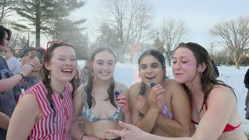 At the Winter Carnival at Bates College, students line up to make the traditional jump through a hole cut in the icy surface of the Puddle. (Lina Marie Schulenkorf/YJI) Lina Marie Schulenkorf is a Correspondent with Youth...