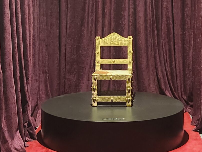 Totems are gold-covered sculptures of animals or objects that sit on the top of the umbrellas used by the chiefs. These totems are often used to represent the status, power and identity of the chief and are sometimes backed with spiritual significance.